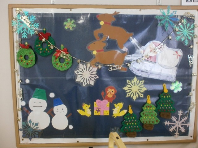 音楽室にあがる階段前の掲示物がクリスマスになっていました。