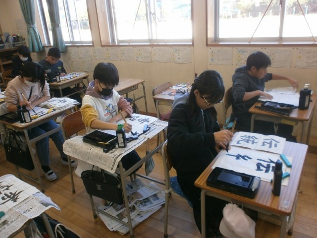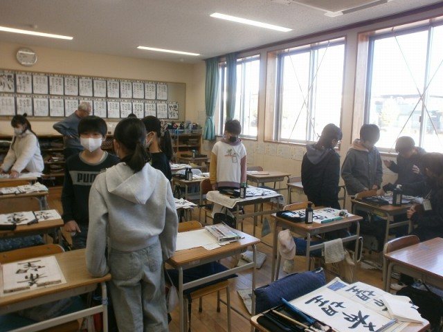 「みんな中心線を意識して書けています」など友達の作品を見合うことでわかったことがありました。