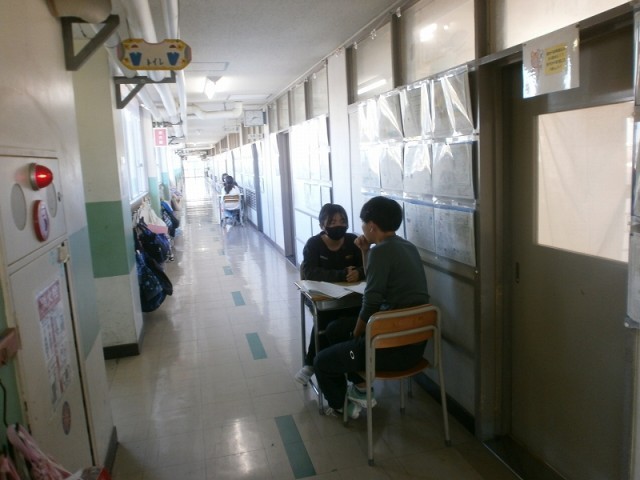 お休みなどで面談ができなかった場合は,後日休み時間や放課後少し残して面談を行う予定です。