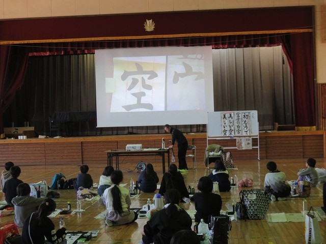 講師の先生の運筆手本を真剣に見て,よりよい文字のイメージをしてから自分で書いてみることをくり返しました。