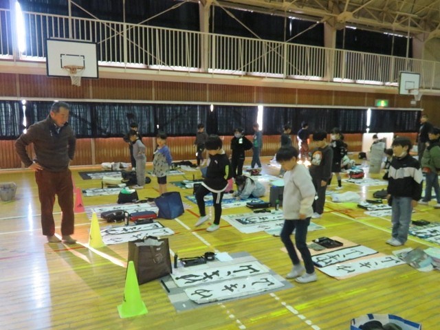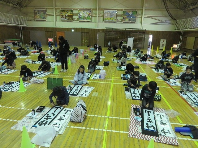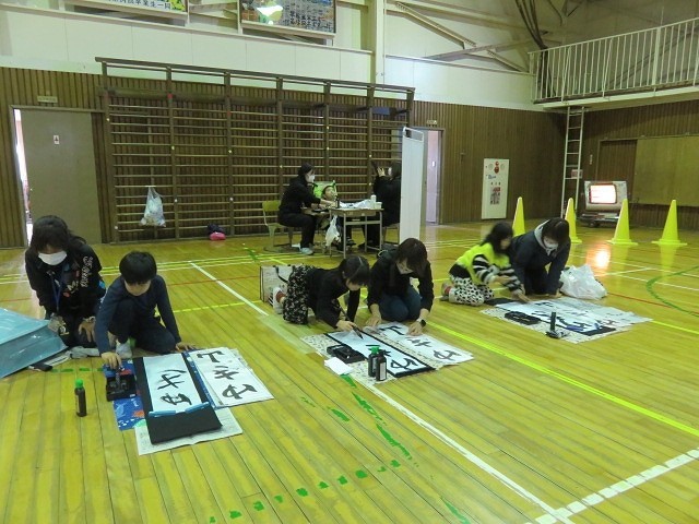 また,半紙よりも長い書き初め用紙に書くので,筆の動かし方も大きくなります。