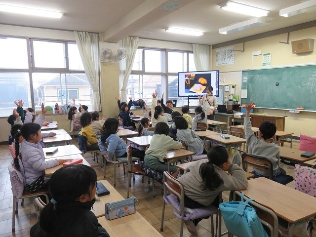 写真を見せながら,おせちに入っている食材の意味を学んでいました。