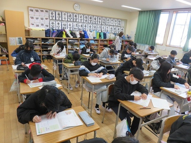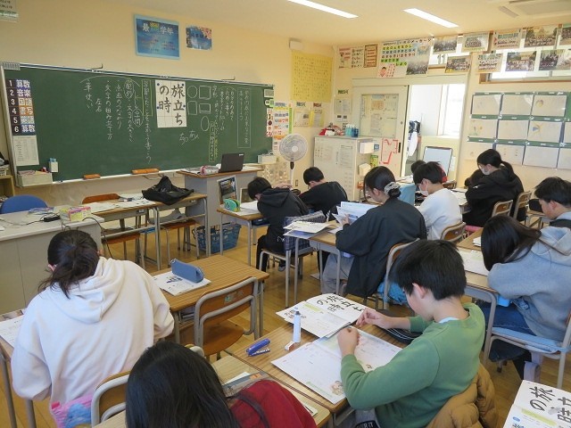 最後の課題文字「旅立ちの時」の硬筆練習をしていました。
