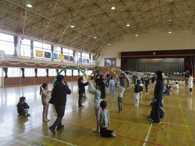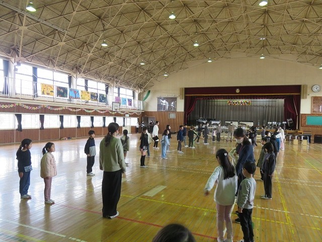 6年生を送る会に向けて1~5年生のアーチの担当者が集まり,場所やアーチの動かし方などを確認しました。