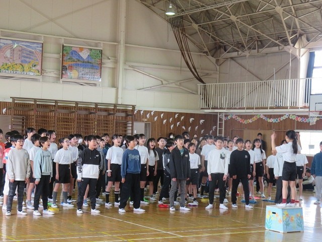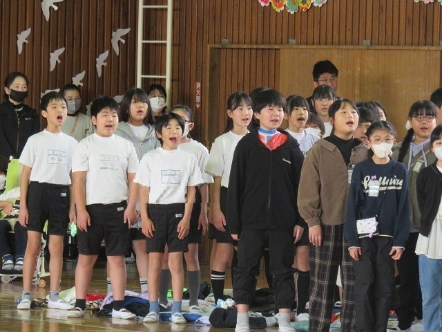 2番は替え歌で歌いました。6年生のことを想った歌詞になっており,6年生もしんみりとした気持ちになりました。