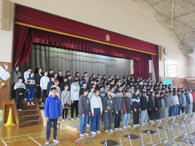 今日は,入退場と卒業の言葉(呼びかけ)の練習を行いました。