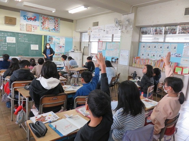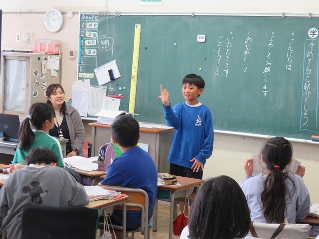 国語では,「手話であいさつをしよう」という学習の中で,自己紹介に挑戦していました。