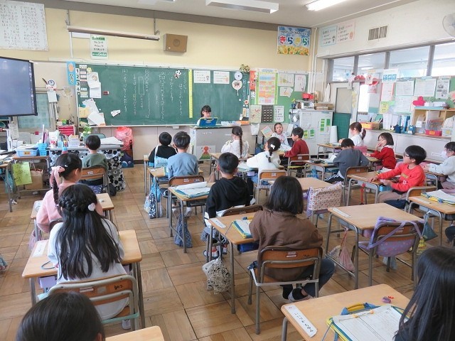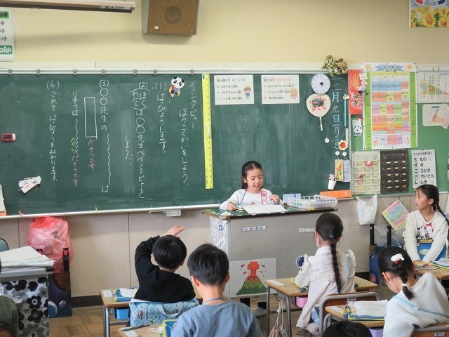 前回先生方にインタビューで聞いたことを学級で報告していました。
