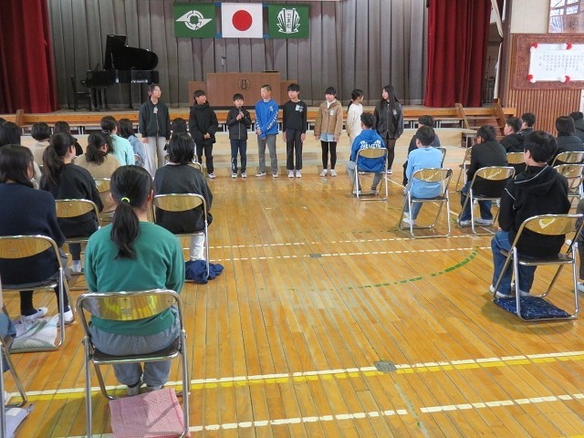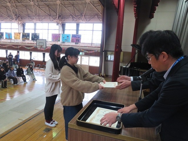 表彰は家庭科作品展の表彰を行いました。おめでとうございます!