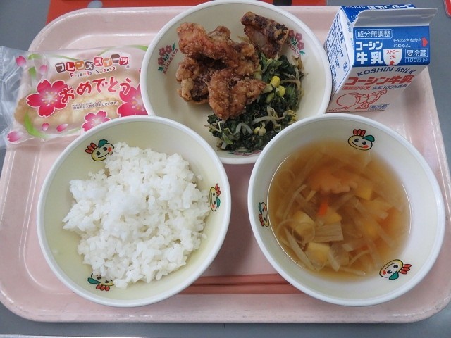 給食は卒業お祝いメニューでした。