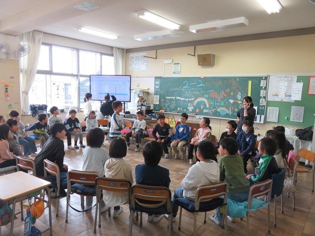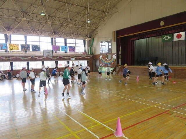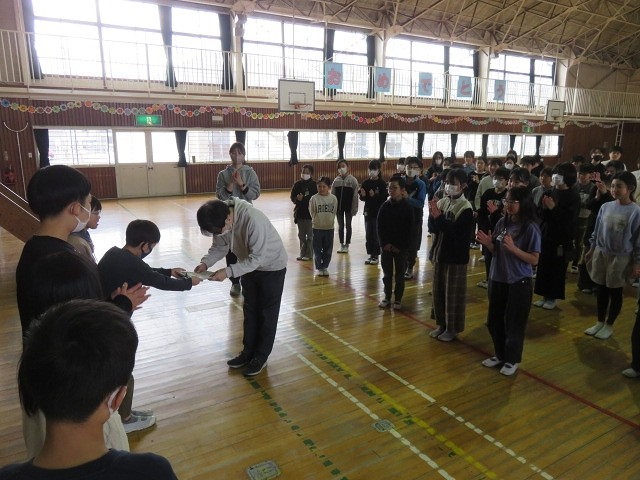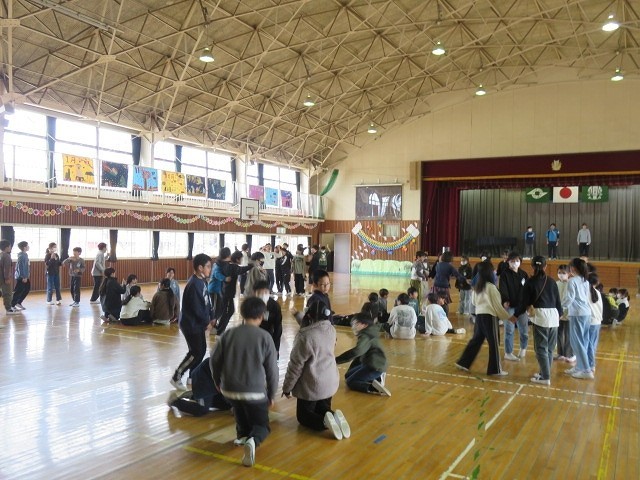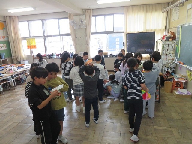 5年生は学年レクを行い,最後にはお世話になった先生方へ手紙のプレゼントをしていました。