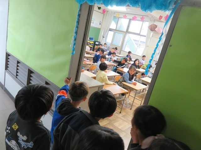 2年生がなつかしいなぁと1年生の教室をのぞいている姿があり,ほほえましい光景でした。