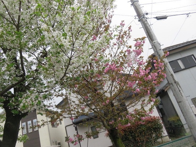 体育館の近くの八重桜が咲いてきました。