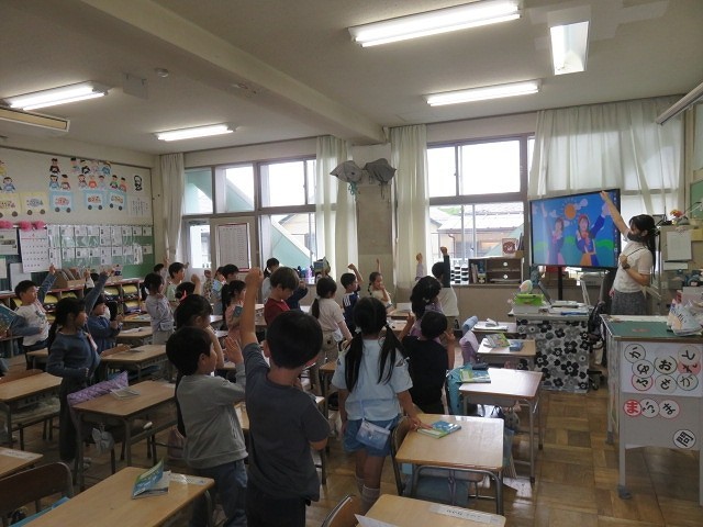 振り付けもつけながら,元気に歌っていました。本番が楽しみです。