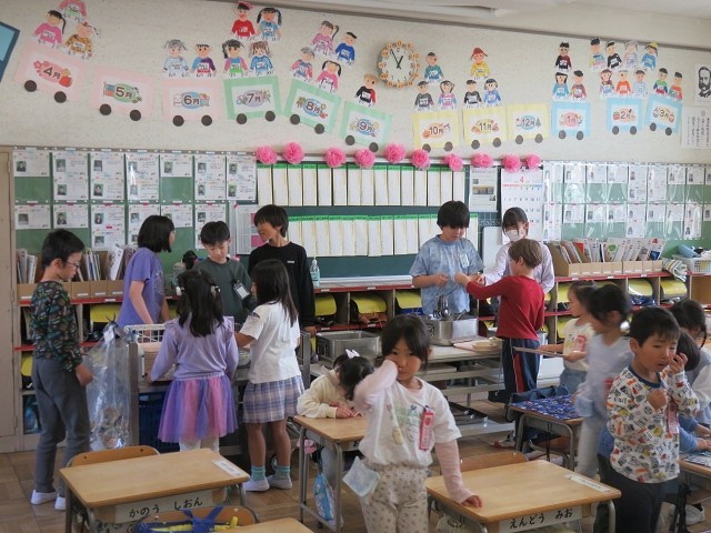 片付けは6年生が手伝っていて,頼りになり,安心です。