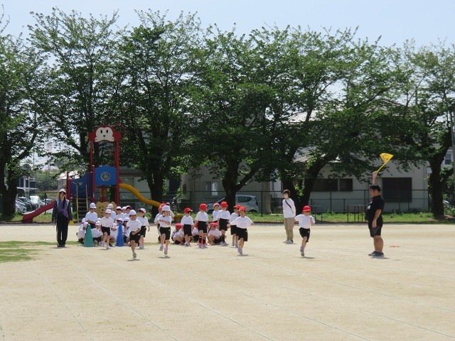 腕を大きくふって,ゴールにある自分の色のコーンをめがけて一生懸命走りました。