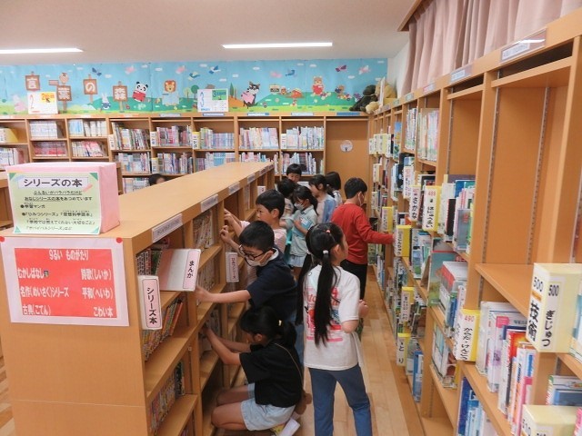 子どもたちは,借りる本を真剣に選んでいました。