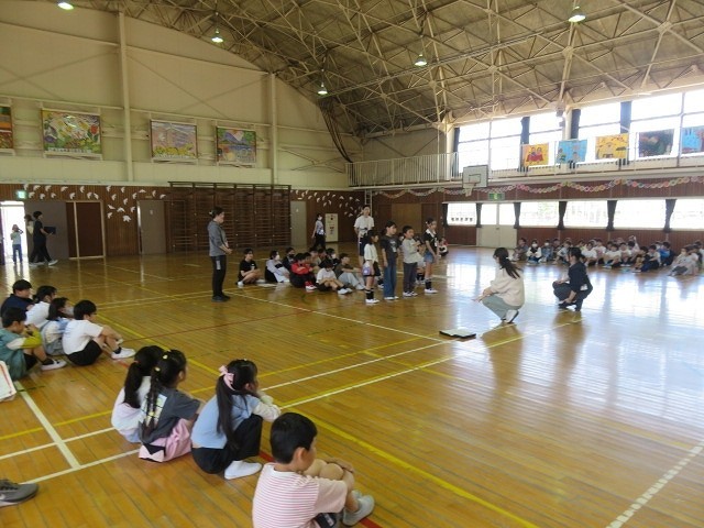 1年生を迎える会で役がある学年の子達が集まり,リハーサルを行いました。