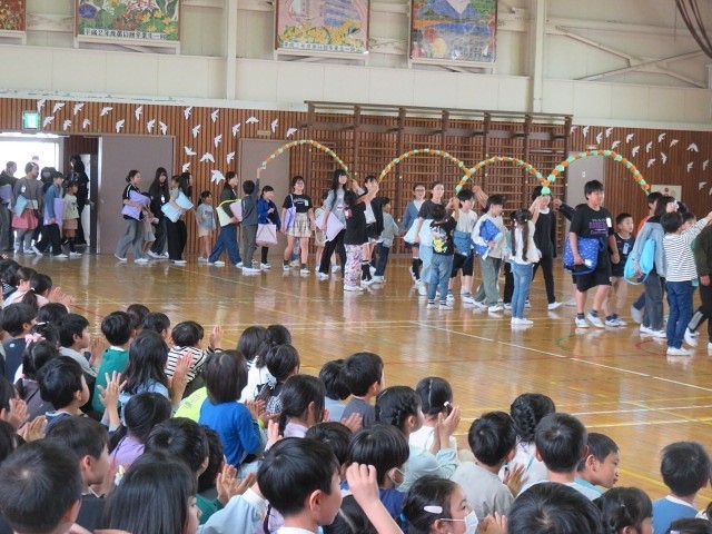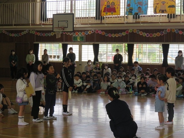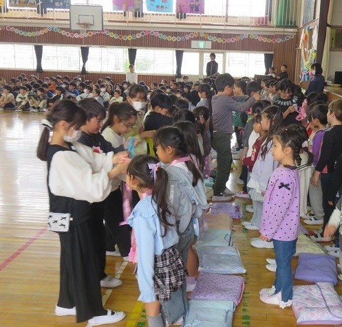 1年生はプレゼントを受け取る時に,きちんとお礼を言うことができました。