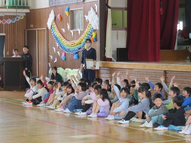 1年生は学級の名前が呼ばれ,大きな返事をすることができました。