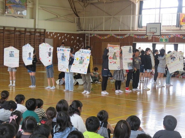 2年生からは朝顔の種,3年生は本のしおり,4年生はペンダント,5年生は先生紹介ポスター。みんなで一生懸命作りました。