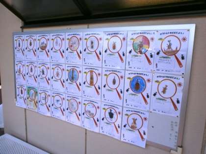 今、日ハム鎌スタ球場に1年生が書いた将来の夢、1〜3年生の希望者が書いたカブトムシの絵が、掲示されています。書いた本人が行くとホームランシールをもらい、自分の絵のところに貼るということです。この夏、鎌スタに行く機会がありましたら、ぜひご覧ください!ちなみに7月21日はヤクルト戦だそうです。