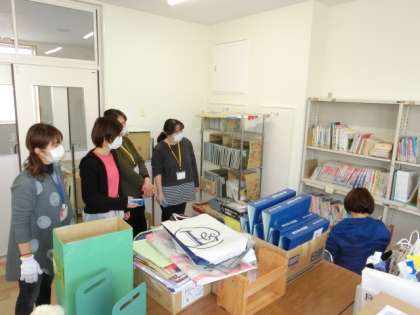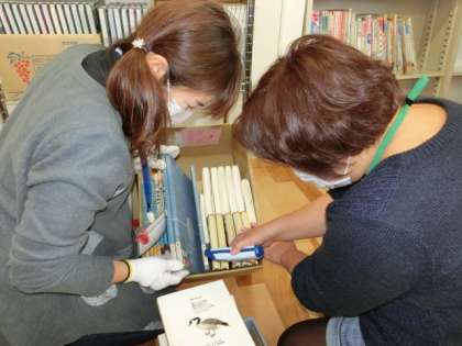 昨日に引き続き、図書ボランティアの方々による蔵書点検が行われています。