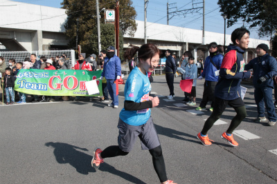 我々応援部隊は、「team Go勝!」の横断幕を掲げて応援しました!