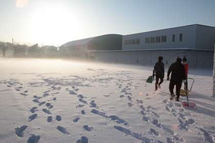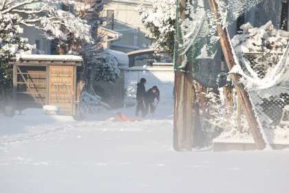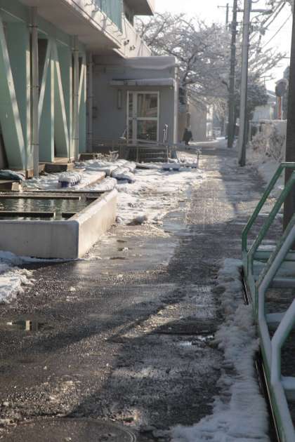 おはようございます。本日の登校時間は9:00となっておりますが、職員の雪かきを行い、校内の通路は確保しました。