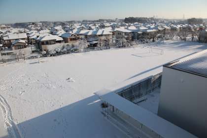 学校周りも一面の雪です。教職員も雪かきの汗がひいてきました。各クラスもうすぐ登校時間です。
