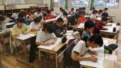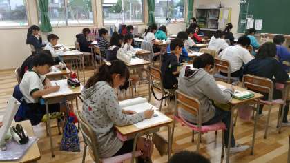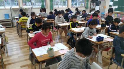 今日は2〜5年生が学力テスト、6年生が全国学力学習状況調査で基礎的な調査を実施しました。
