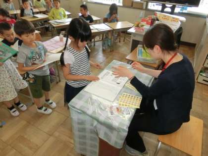 残さず食べることができた子は「きゅうしょくもりもりかあど」にシールを貼ってもらっていました。