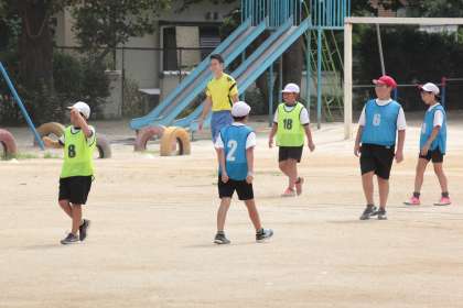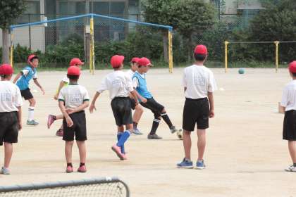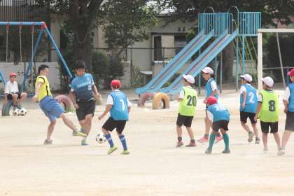 ミニゲームを行いながら、パス回しやボールコントロールを練習しています。
