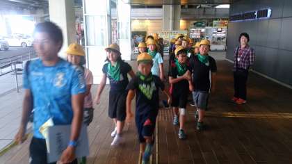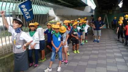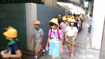 最初の休憩に入りました。出発から約1時間かかりました。どうやら東部小学校の後をついていっている感じです。湾岸市川を8時20分に出発しました。