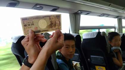 バスガイドさんが、手品師に扮してマジックを見せて頂きました。また、引き続きお札や硬貨のひみつを説明してもらいました。みんな興味興味津々でした。