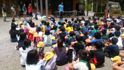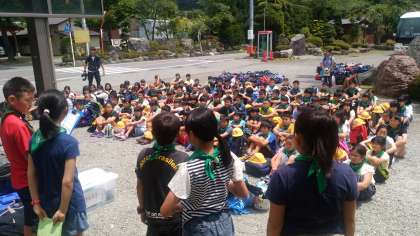 無事に予定通り11時20分に西湖キャンプ場に到着しました。やはり暑いです。30度はゆうに超えています。