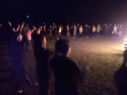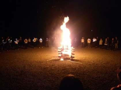 すっかり太陽も落ちて、暗闇にキャンプファイヤーの火が灯されました。