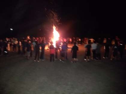 基本のタタロチカ、オクラホマミキサ、マイムマイムを踊りました。最後にねぶたよさこい大乱舞を踊り、打ち上げ花火を鑑賞してキャンプファイヤーを終えました。