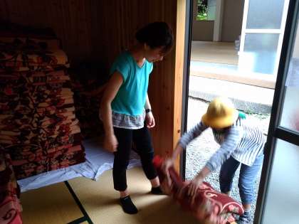 毛布を綺麗にたたんで返却するのは、本当に大変です。みんなやり直し、やり直しに頭を悩ませ、どうたたんだら終わるのか。勉強しました。