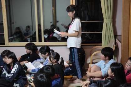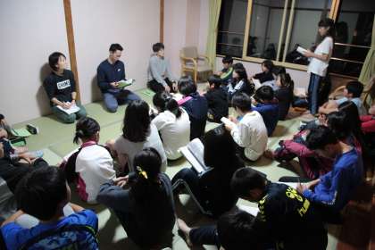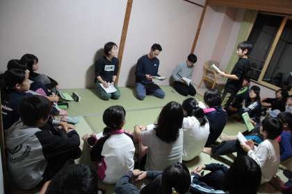 部屋長会議をしています。今日の反省と明日の諸注意をしています。
