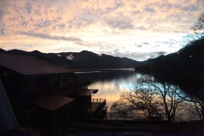 6年生修学旅行中禅寺湖の夕日
