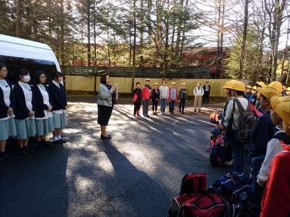 修学旅行でお世話になった ホテル花の季 をあとにして、湯滝に向けて出発しました。