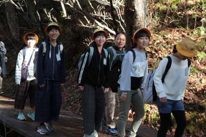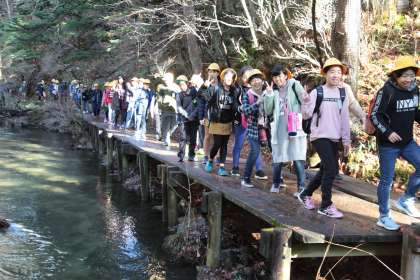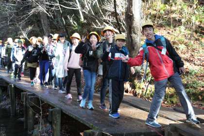 戦場ヶ原ハイキング 湯川脇を歩いている風景です。