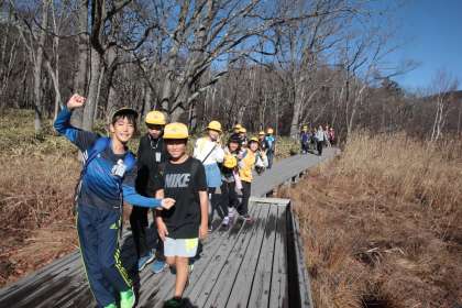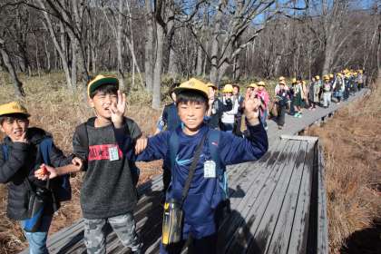 戦場ヶ原ハイキングになり、男体山が見えてきました。