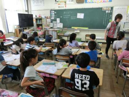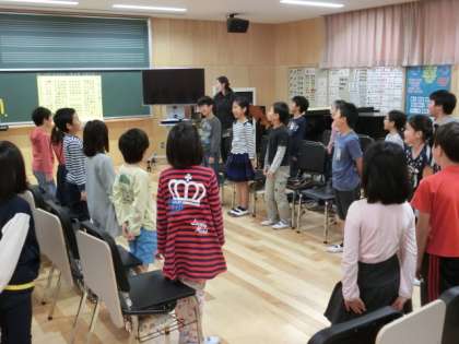 音楽室では、3の4が金子みすゞの「わたしと小鳥とすずと」を歌っていました。