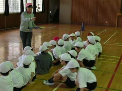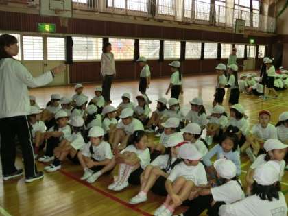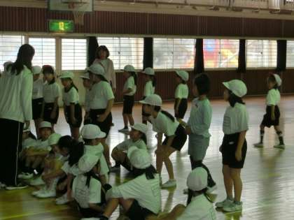 2年生は明日の持久走大会の予行練習に向けて、並び方を確認しています。明日に向けてさまざまな練習が行われています。