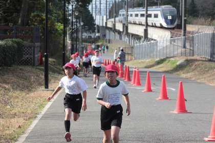 今日は、天気も良く持久走大会本番のような緊張した雰囲気の中で予行練習が実施できました。市制公園側から北総線沿いに戻ってくる緑道は坂道になっており、かなりきついことが子どもたちにも分かったと思います。