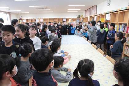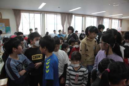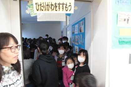 歓声が沸き起こるたびに、廊下で入替を待つ子どもたちはそわそわ為ている様子が伝わります。出入り口付近が混み合っています。もう少しで入ります。