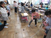 3年生が算数の勉強で主さ比べをしています。鉛筆や消しゴムなど身近なものをたくさん比べていました。みんなとても楽しそうです。