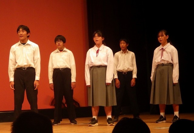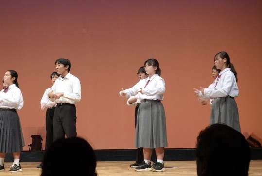 鎌ケ谷市教育委員会等が主催となっている、「特別支援学級小中合同発表会」が今年もきらりホールで開催されました。どの学校の発表も一生懸命な児童生徒の姿がとてもきらきらしていて、すばらしいものでした。本校の若草学級の生徒は伝統の合唱を発表しました。今年の挑戦として、ピアノ伴奏も生徒が行い、途中から手話で表現しながら合唱しました。手話の手の動きも含めて全員の心がひとつになった合唱となり、たくさんの拍手をいただきました。今日まで練習とてもがんばりました。すばらしい発表をありがとう。